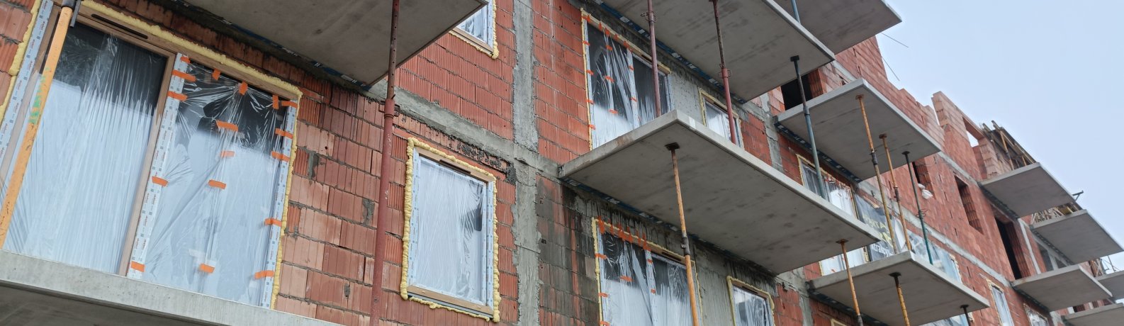 Jednocześnie ruszył montaż stolarki – na budowie pojawiają się okna i drzwi. Dzięki temu budynek stopniowo zyskuje docelowy układ, co ułatwi dalsze prace wewnętrzne i wykończeniowe.