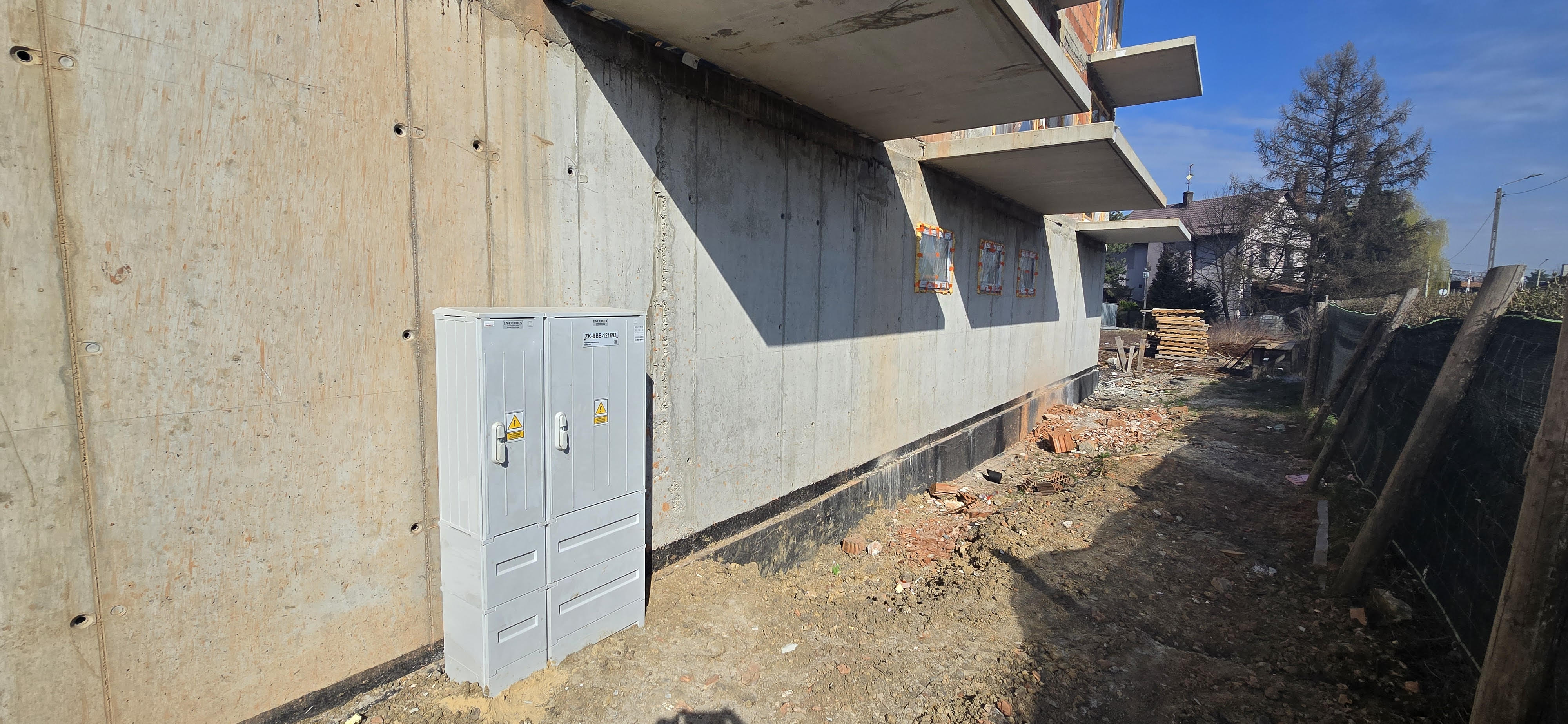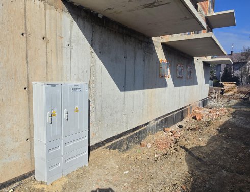 Na placu budowy zakończono również realizację przyłączy infrastrukturalnych. Wykonane zostały instalacje doprowadzające prąd, gaz oraz media sanitarne, co umożliwia przejście do kolejnych etapów wykończeniowych i instalacyjnych.